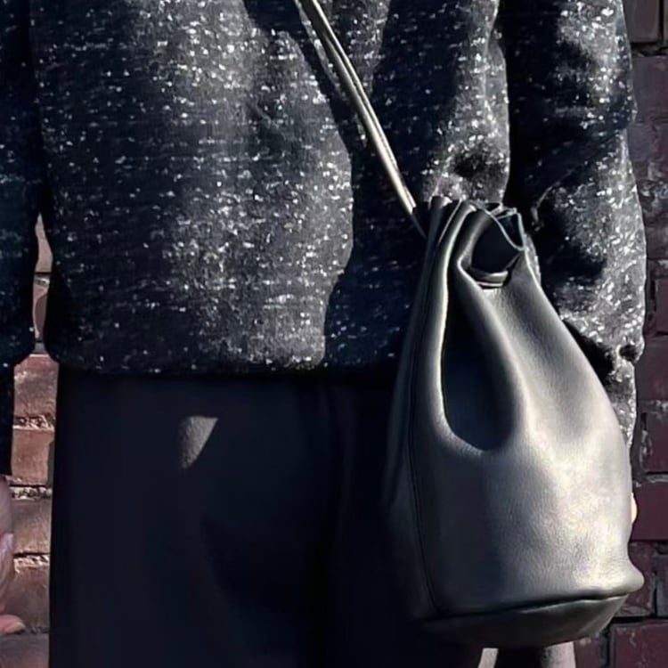 国産のSHUTTLE(シャトル)レザーを使用した、上品で機能的な巾着ショルダーバッグ。