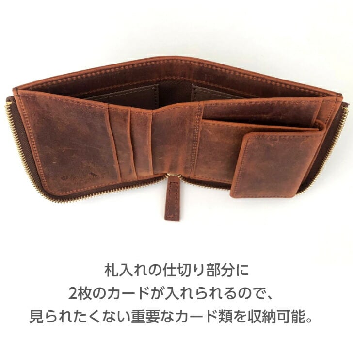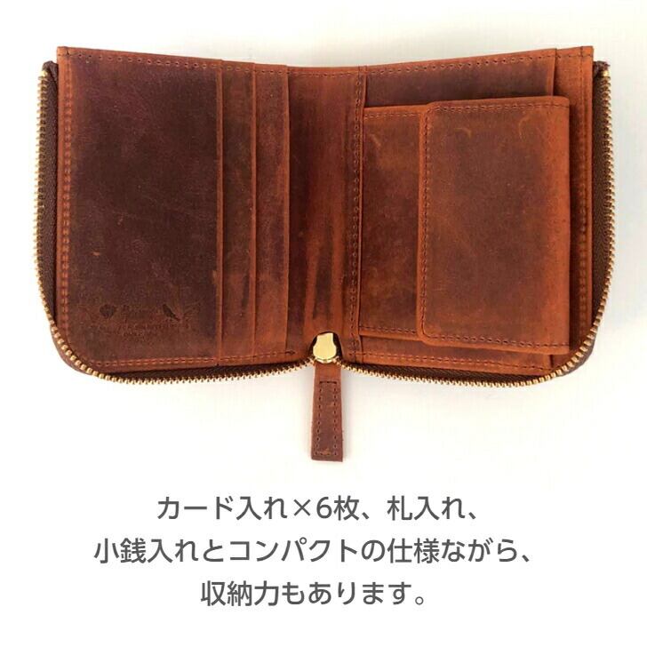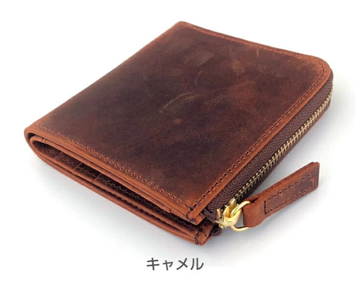 クレイジーカーフレザーを使用した、コンパクトで使い勝手の良いL字ファスナー型のショートウォレットです。