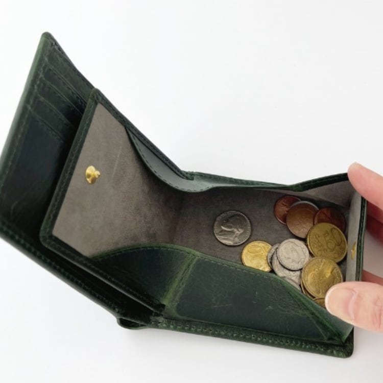 コインケースは大きく開くボックス型で、小銭の出し入れがスムーズ。