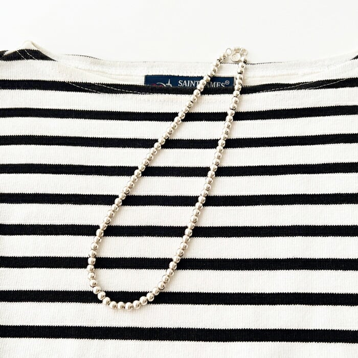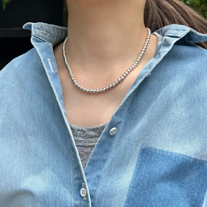 程よい存在感のあるシルバービーズをあしらった、シンプルで上品なチェーンネックレス。