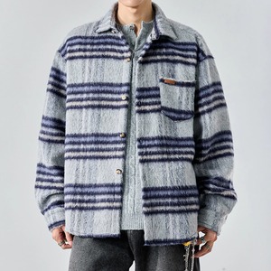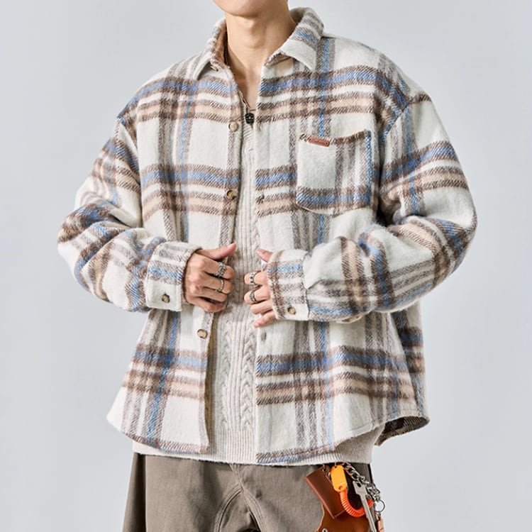 パッチポケット チェック柄 長袖 腰丈 シャツ ◆2col E0002