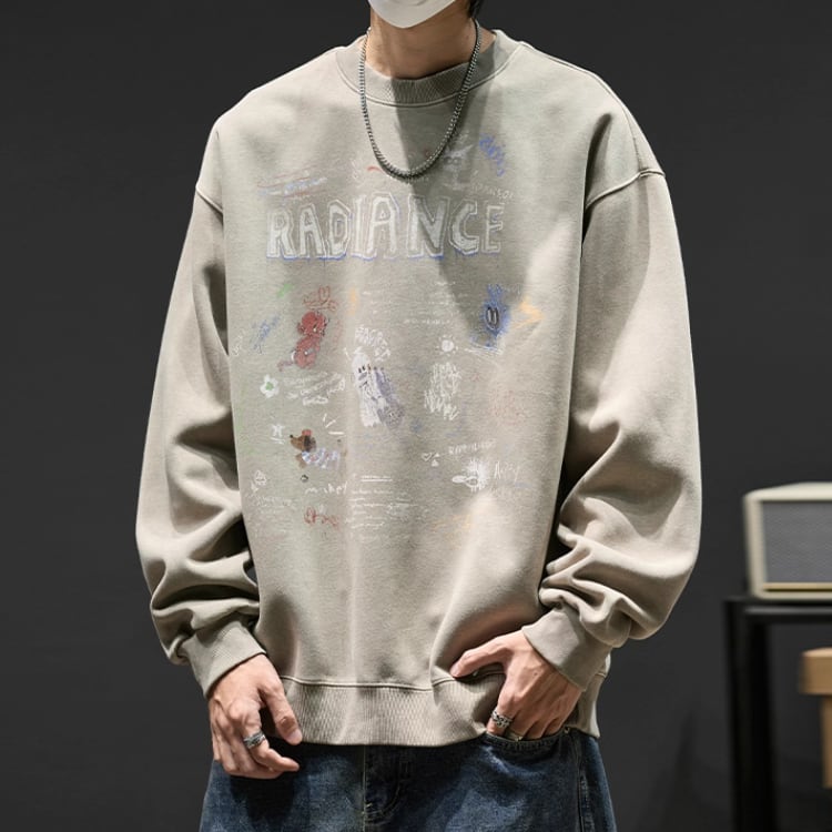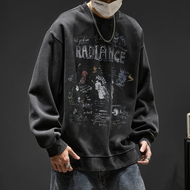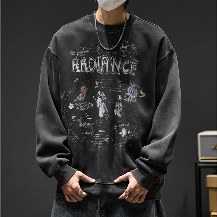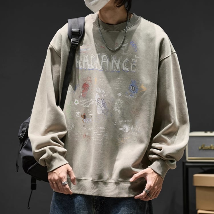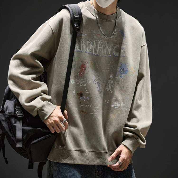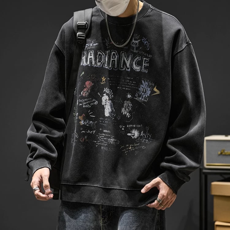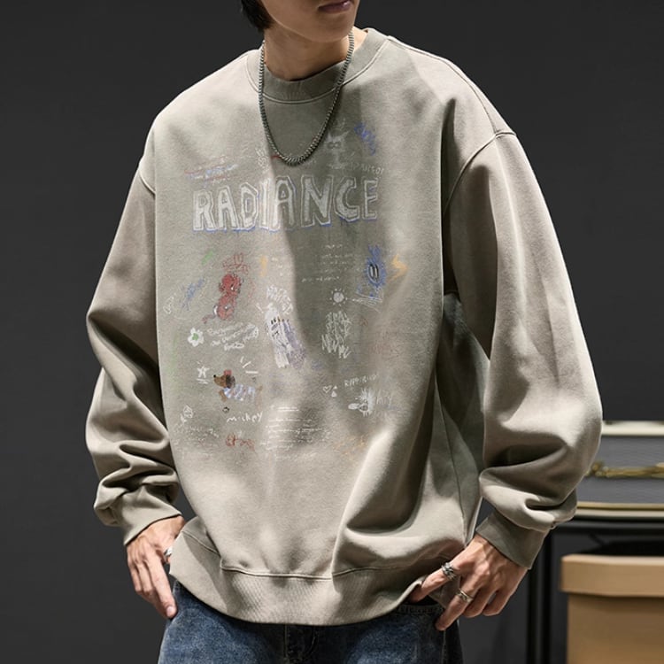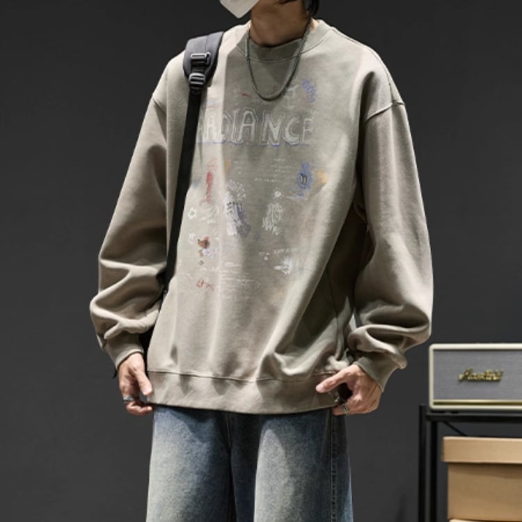 存在感のあるプリントが目を引く、オーバーサイズのスウェットシャツ。