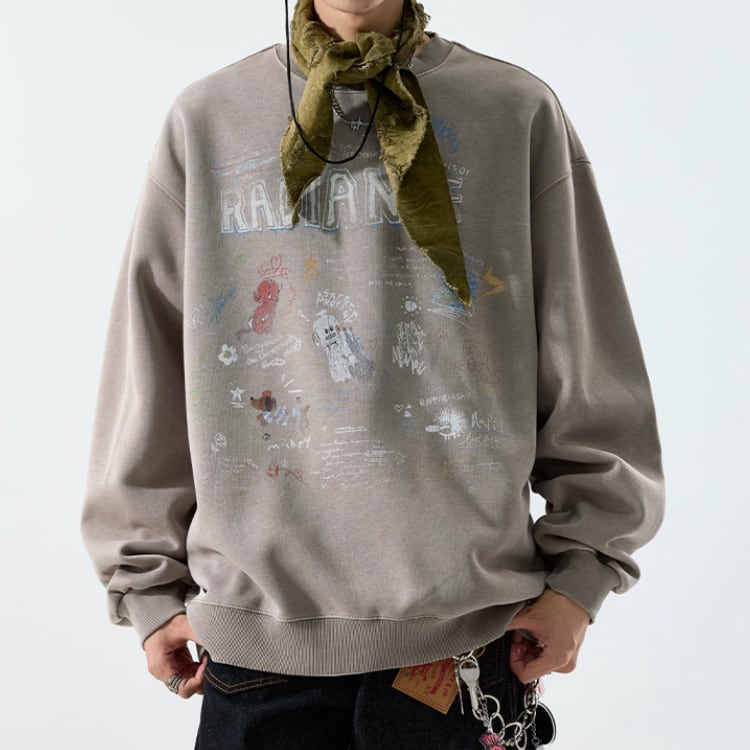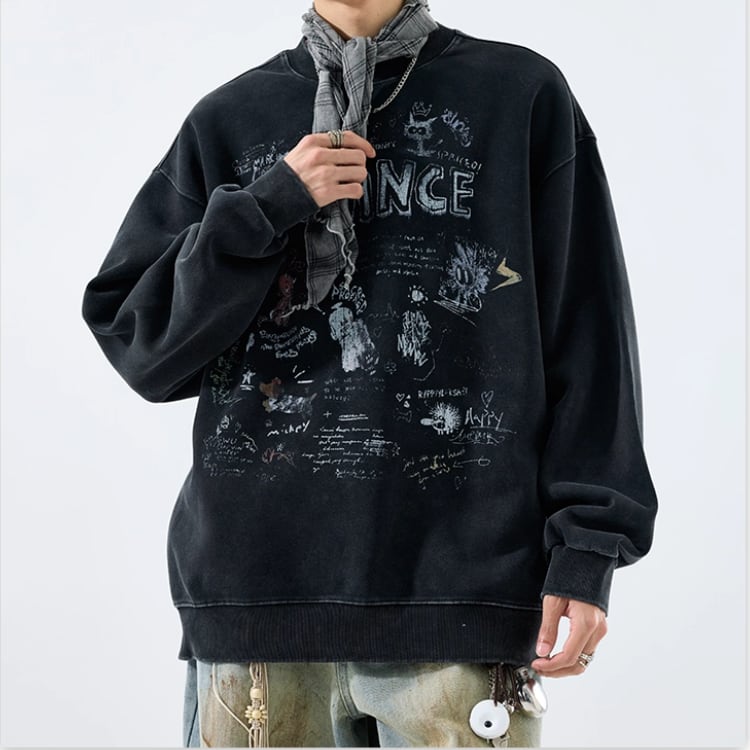 ドロップショルダー プリント柄 スウェット ◆2col E0009