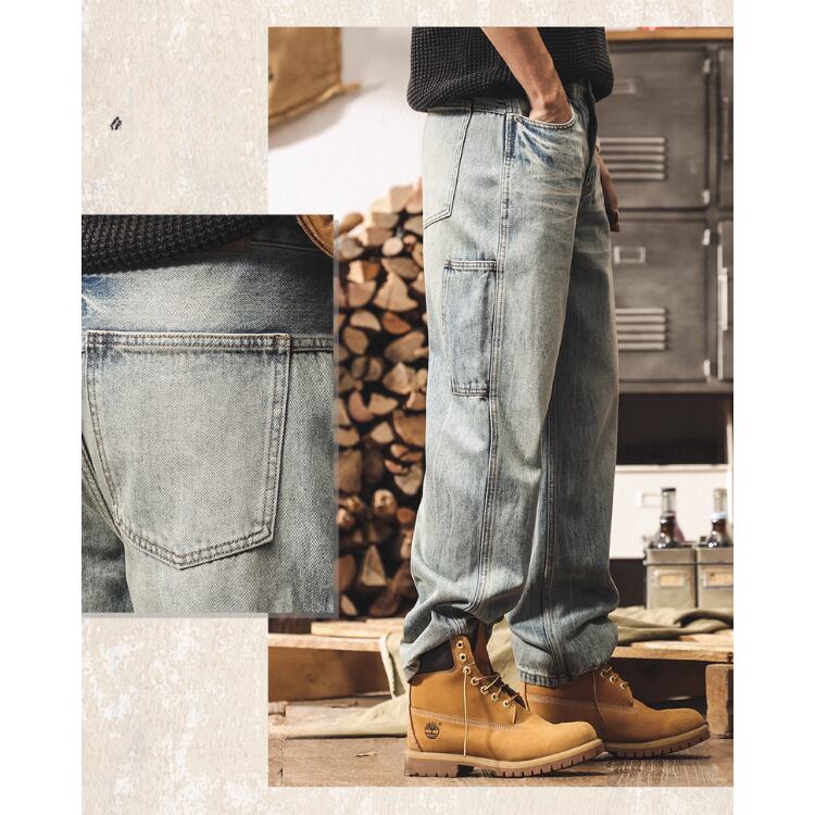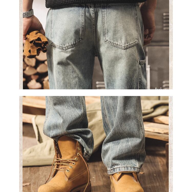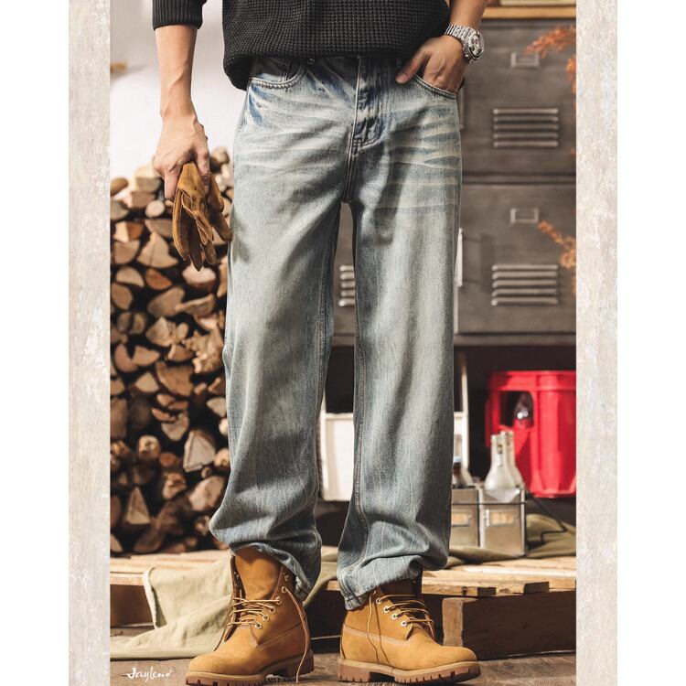 ルーズフィット ストレート フルレングス デニムパンツ E0031
