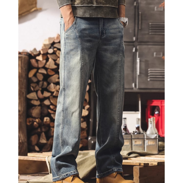 パネルデザイン ストレート デニムパンツ E0033